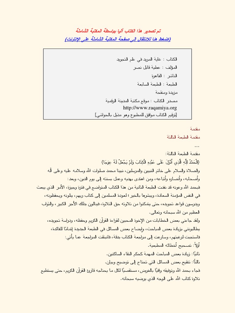 0760 اقرا اونلاين كتاب Pdf غاية المريد في علم التجويد عطية قابل نصر Free Download Borrow And Streaming Internet Archive
