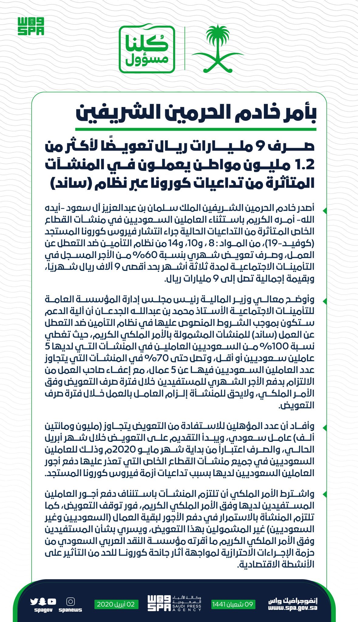 محمد القصير On Twitter إيضاح للامر الملكي الكريم بدعم رواتب السعوديين والذي صدر هذا اليوم للقطاعات المتأثرة من تداعيات كورونا عبر نظام ساند Https T Co F8b4nnft9w