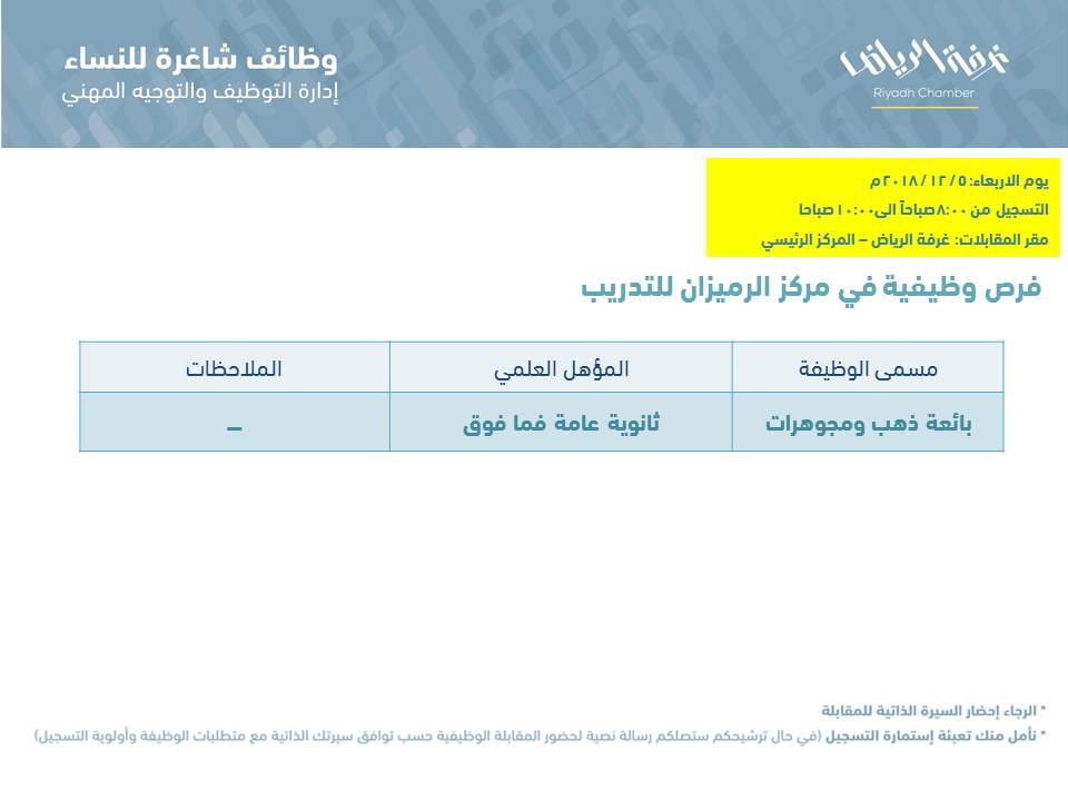 الرميزان للذهب وظائف بائعات ذهب ومجوهرات